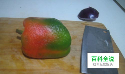 用刀将大辣椒分成两半。