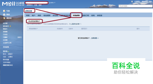 打开QQ邮箱,进入邮箱设置——其他邮箱———添加其他邮箱。