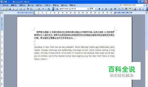 打开Word 2003,分别输入中文和英文,如图所示