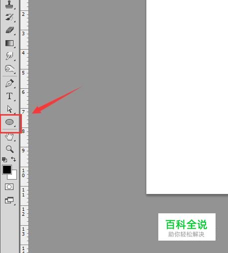 打开ps新建一个文件,然后在工具箱内找到椭圆形选项,如图所示: