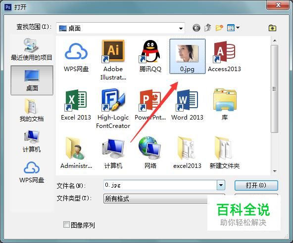 打开ps之后在空白处双击鼠标左键,在弹出的对话框内找到我们的图片, 如图所示: