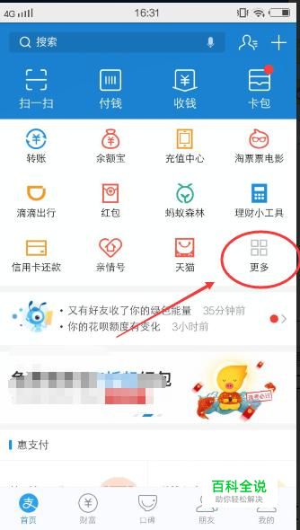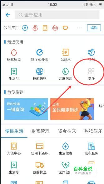 更多 打开支付宝,点击【更多】选项卡,如下图所示: