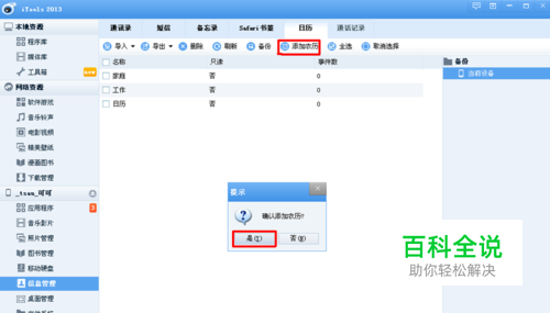 然后选择 添加农历,弹出窗口提示 是否添加,选择 是; 等待不久,农历就添加好了。 另外如果之前有添加过农历,请先删除。