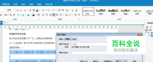 点击全部替换,弹出已经替换了多少处,问是否搜索全文档,如下图。