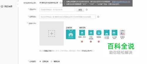 华为应用市场上架:上传添加APK;填写应用包名(可以向开发人员索要);准备好应用ICON,上传相关图片;应用截图备好上传,注册截图的尺寸,至少上传3张。