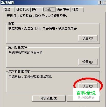 再选择“启动和故障恢复”下的设置按钮。