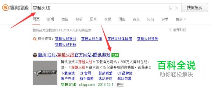打开搜狗浏览器,输入穿越火线,点击官网进入,如下图。