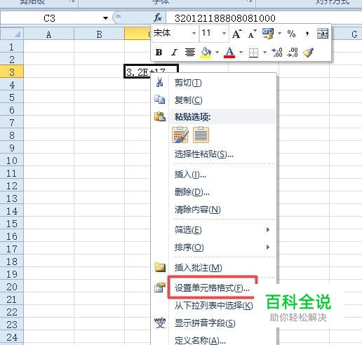我们右击该单元格,弹出的界面,我们点击设置单元格格式;