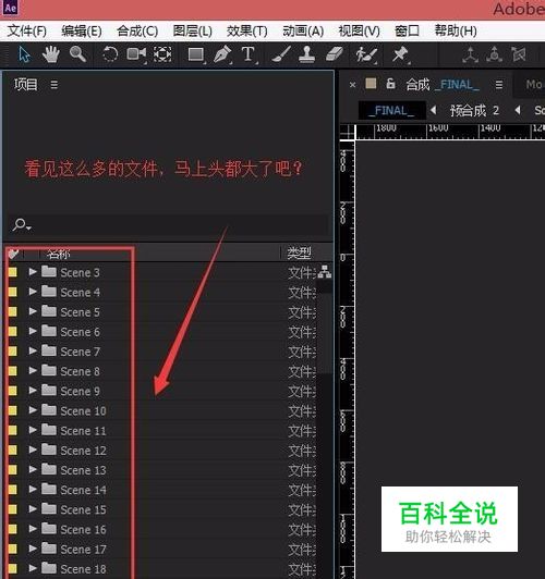改完之后回到了最顶层合成,也就是最开始进来的层,已经修改完Scene19,现在按次序修改18,仔细一个个修改好,修改完,这里有个对操作还不太上手的人,或者记忆力很差的,看图: 修改完成一个就点击右边锁定一个,同时是一个记号,同时你自己也不会因为误操作出现你发现不了的问题,