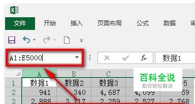第二种方法: 在程序左上角的【名称框】处输入A1:E5000,然后回车即可。