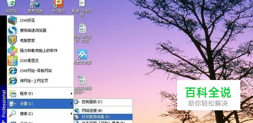 电脑“开始”—“设置”—点击“打印机与传真”,打开打印机设置面板。