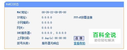 登录路由器 - 运行状态 - WAN口状态,如果是‘服务无响应’,就可以用本经验来处理