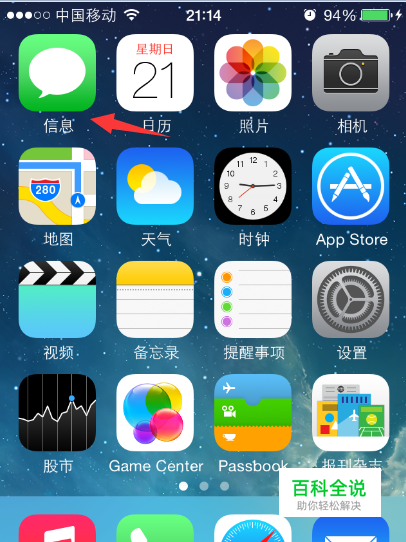 领取中国移动新福利500MB流量前,我们在手机上打开短信图标。