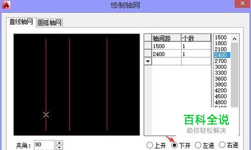 如果上面的开间宽度不一样,那就要单独去输入上开间的【轴间距】和【个数】。在【上开】前面小圆圈里点一下鼠标就可以去选择了。