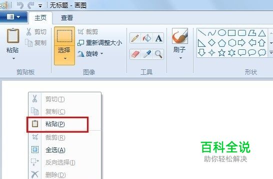 接着打开“画图”程序,在内容区域右击,选择“粘贴”。