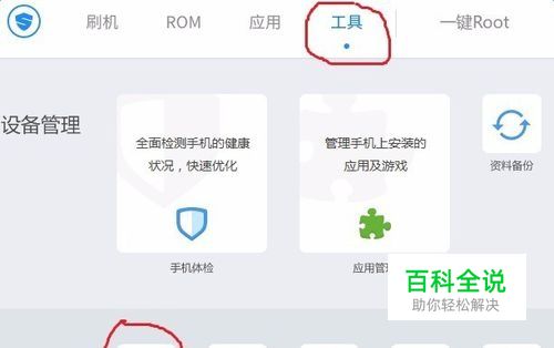 进入一键刷机在弹出来的页面可以找到工具按钮,点击工具按钮后就可以在下方找到恢复手机出厂设置这个功能了