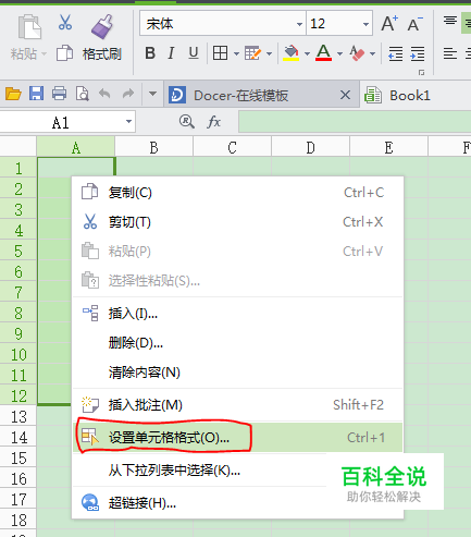 选定要设置为“文本”格式的单元格,点击鼠标右键,在弹出的菜单里选择“设置单元格格式”选项。(如图所示)