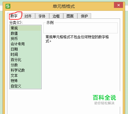 在“单元格格式”界面下,选择“数字”选项。(如图所示)
