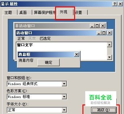 点击“外观”选项卡,点击“高级”选项