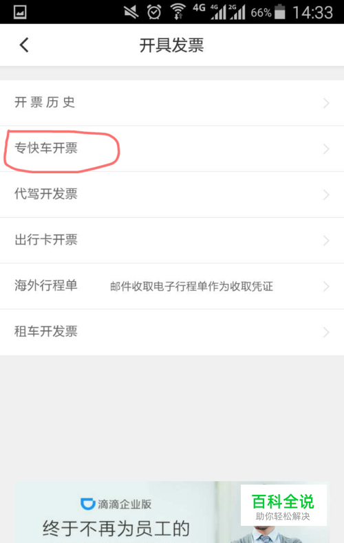 进入发票页面以后,可以看到可以索取的发票分类以及开票历史。有快专车发票,代驾发票等。小编常坐快专车,点击“ 专快车开票”进入。