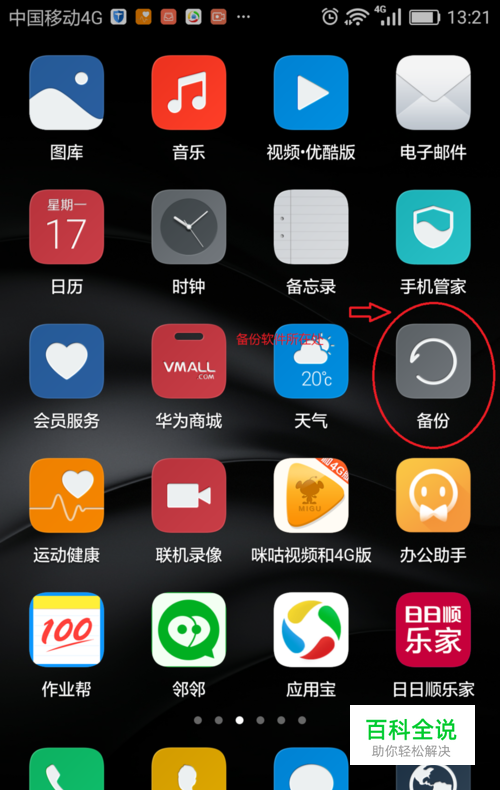 先谈谈用备份软件备份。首先进入备份软件(智能手机一般都有)。