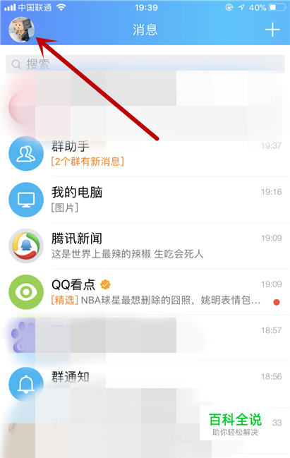 打开自己的手机QQ,进入之后,点击一下自己界面左上角的自己的头像的图标。