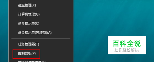 打开电脑,在桌面上的左下角位置右击windows的开始按钮,在弹出的黑色列表里面选择【控制面板】