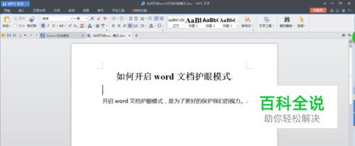 点击一下“护眼模式”之后出现如下图所示,比较一下看看有什么区别。 这样就开启了word文档护眼模式成功。