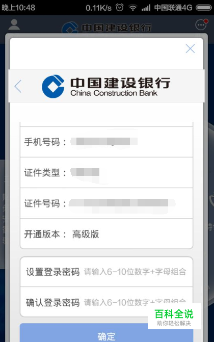 输入我们手机号码,身份证号码以及名称,设置登录密码,点击确定
