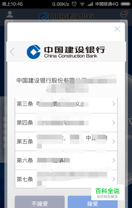 此时会弹出开通手机银行协议,我们查看完毕,点击下方的【接受】选项