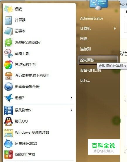 点击【开始】,选择【控制面板】。如图
