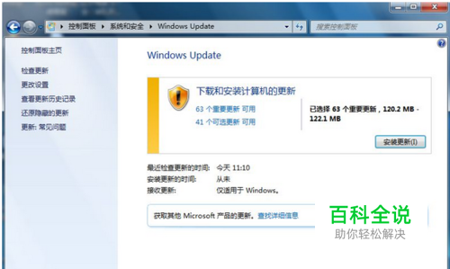 如果没有安装的话,依次单击“”按钮 、“”和“”。 在左侧窗格中,单击“检查更新”。如果之前有重要更新会显示先需要安装的重要更新。需要先行安装。如下图所示: