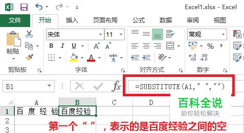 4.如图所示,substitute函数经常用来去掉文本之间的空格。