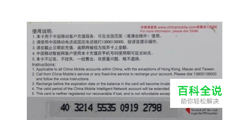 首先,我们需要刮开自己获赠的移动或者联通话费充值卡获得密码,然后记下卡号和密码。然后按照图片的操作提示进行下一步操作。