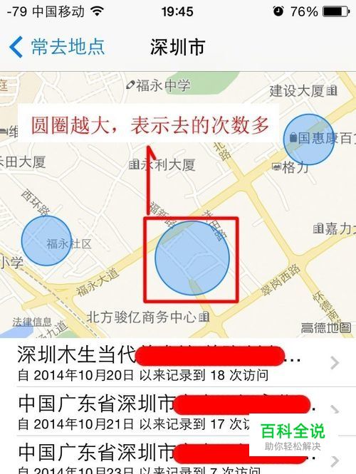圆圈越大,表示去的次数多。