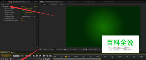 首先我新建立一个固态层,命令为BG,再在背景层加上ramp,渐变的方式改为radial,之后调整好颜色!
