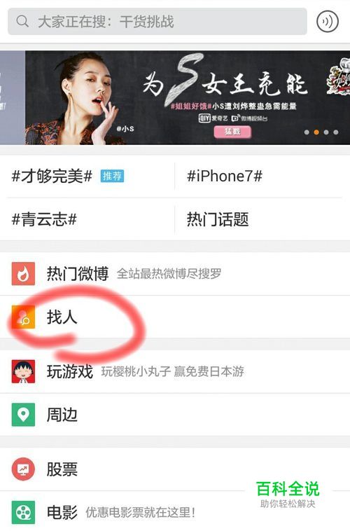 打开手机或是电脑,登录自己的微博账号,在出现的页面找到''找人''这个选项,点击进去。
