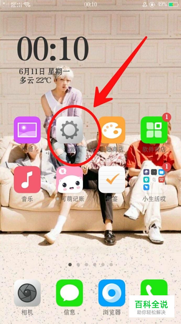 首先点击手机桌面上的“设置”图标,如图