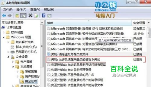找到计算机配置--Windows 设置--安全设置--本地策略--安全选项,在右侧找到关机:允许在未登陆前关机,鼠标双击。