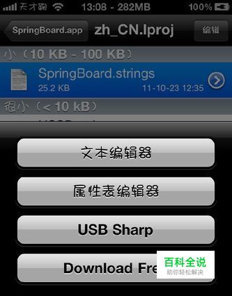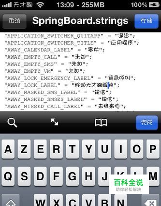 第二步:点击SpringBoard.strings,文本编辑器打开,找到移动滑块来解锁,点左上角编辑,写成你想写的字