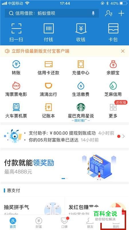 首先点击支付宝下方的我的,如下图所示。