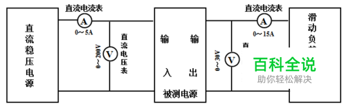 8.6 效率 8.6.1 测试说明:额定输入电压下,输出电流为满负载的一半时,输出功率与输入功率的百分比。 8.6.2 测试方法: a) 如下图所示连接设备。 b) 调整直流稳压电源输出电压为110V时,上电。 c) 输出电流为满负载的一半时,记录电源模块输入端电压表指示值Ui及电流表指示值Ii,输出端电压表指示值Uo及电流表指示值Io。 d) 效率按式(4)计算。 P=(UoIo /UiIi) ×100%-------------(4)
