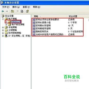 依次展开“帐户策略”→“密码策略”将红框中的“策略”。