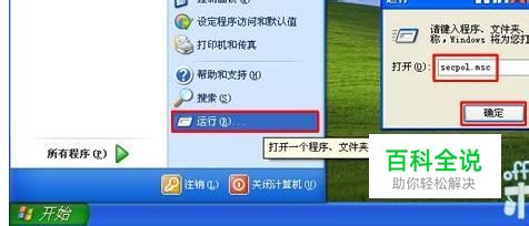单击“开始”菜单,打开“运行”输入“secpol.msc”再点击“确定”。
