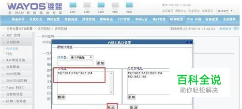 输入http://192.168.1.1进入路由器界面。在弹出的框中输入用户名和密码点击确定,进入路由器设置界面,在设置界面下的【行为管理】—【访问控制】里面,首先第一条做2个禁止访问的规则,如下图: