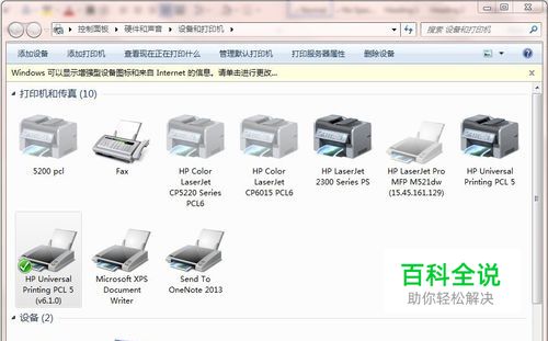 以win7电脑为例:点击开始-设备和打印机,出现下面界面: (此电脑安装的是官网上的通用驱动HP Universal Printing PCL5(V6.1.0),如果是M712自身驱动设置方法相同)