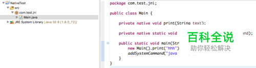 创建java项目,编写有main和两个带有native关键字的方法(如图),保存编译。