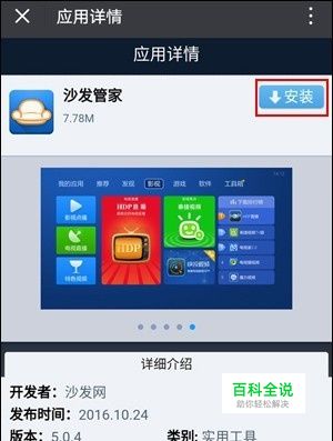 进入沙发管家安装界面,点击右上角安装按钮。