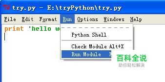 安装编译器。将工具双击打开,按照默认方式安装即可。安装完成后在开始-程序中找到IDLE(Python GUI)快捷方式,打开。你可以新建一个窗口,保存为*.py的文件格式。内容可以是:print ‘Hello World’。