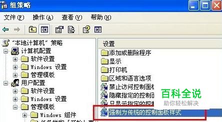 双击"用户配置"->"管理模板"->"控制面板"下的"强制为传统的控制面板样式"